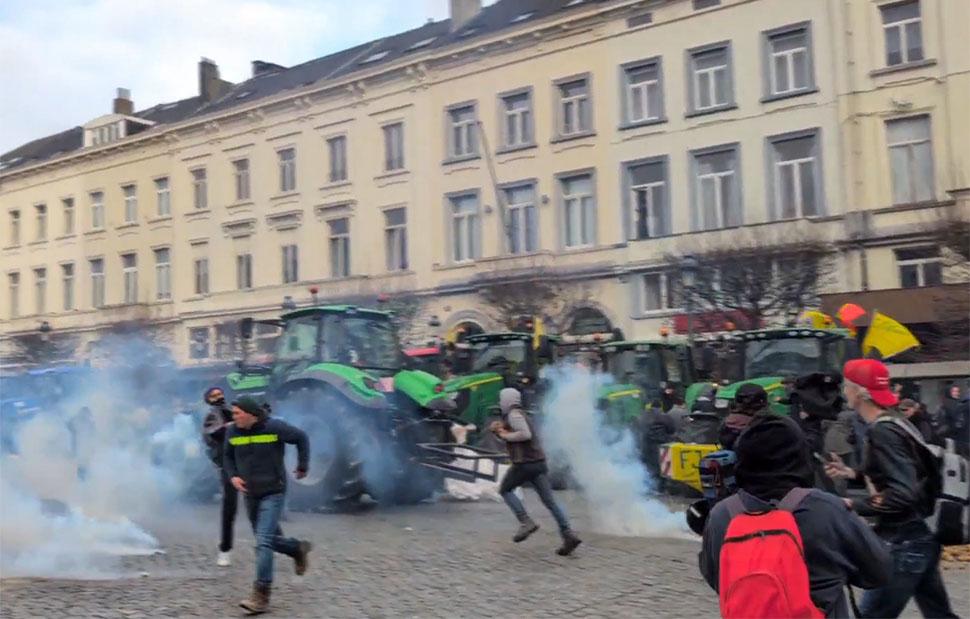 Οι αγρότες έχουν συγκεντρωθεί ζητώντας μείωση του κόστους παραγωγής και αλλαγές στην Κοινή Αγροτική Πολιτική. «Η αστυνομία έχει αποκλείσει όλους τους δρόμους και απαγορεύει ακόμη και σε πεζούς να περπατήσουν σε κεντρικές λεωφόρους χωρίς ειδική διαπίστευση από τα ευρωπαϊκά όργανα», προσθέτοντας ότι η ατμόσφαιρα είναι «αρκετά τεταμένη».