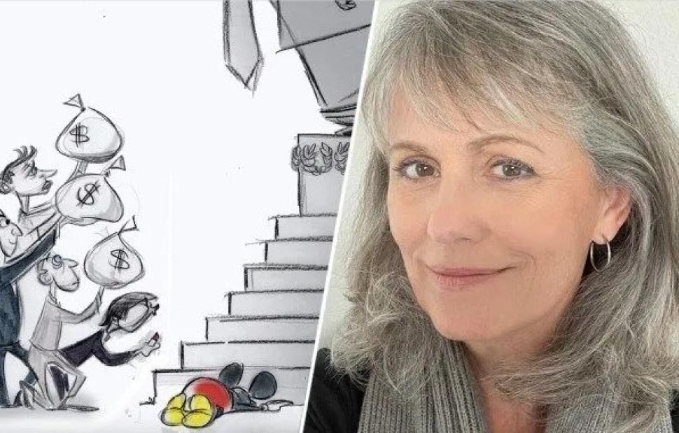 Το σκίτσο, που δημοσιεύθηκε στο Substack της, δείχνει τους κυρίους Μπέζος, Μαρκ Ζούκερμπεργκ, Σαμ Άλτμαν και Πάτρικ Σουν-Σιονγκ, καθώς και τον Μίκι Μάους, να γονατίζουν μπροστά σε ένα άγαλμα του Τραμπ, κρατώντας σακούλες με χρήματα.
