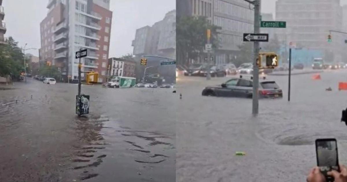 Φωτογραφίες και βίντεο που αναρτήθηκαν στα μέσα κοινωνικής δικτύωσης έδειχναν νερό να χύνεται σε σταθμούς του μετρό και υπόγεια και να φτάνει μέχρι την κορυφή των τροχών των αυτοκινήτων σε τμήματα του Μπρούκλιν και αλλού.