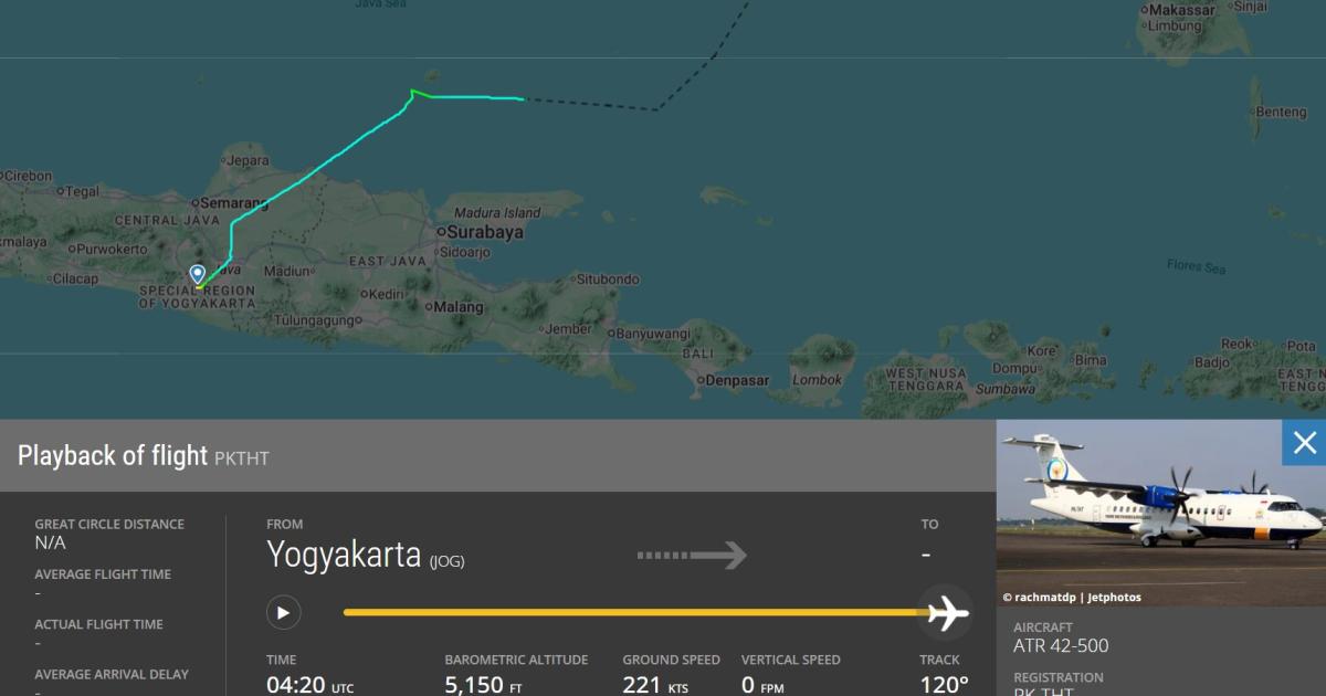 Το αεροπλάνο, ιδιοκτησίας της αεροπορικής εταιρείας Indonesia Air Transport, είχε προορισμό το Μακασάρ, στο Νότιο Σουλαουέζι, αφού απογειώθηκε από το Γιογκιακάρτα, στη νήσο Ιάβα, με τρεις επιβάτες και 8μελές πλήρωμα.
