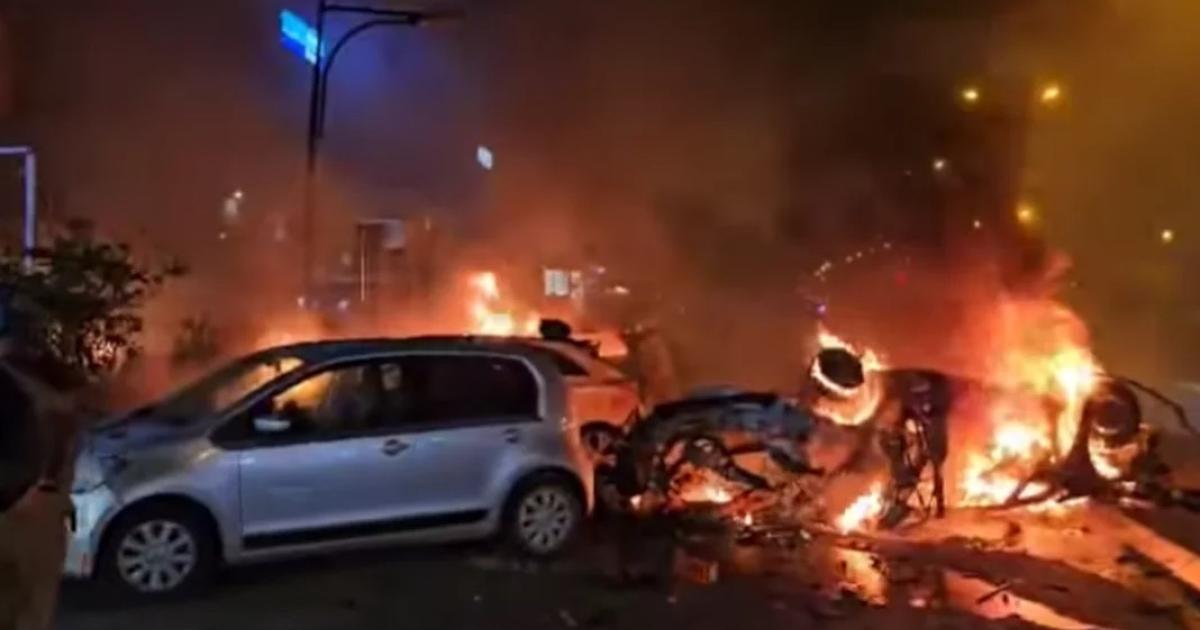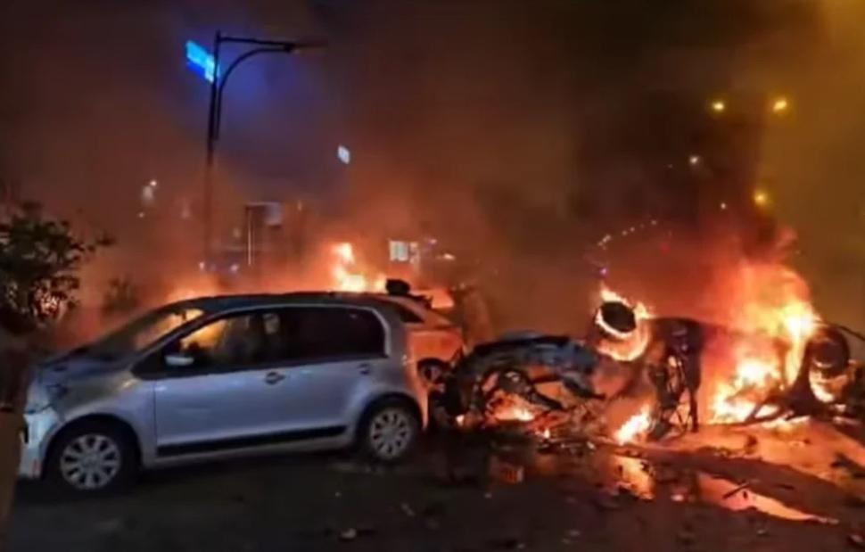 Σύμφωνα με τα πλάνα που μετέδωσε η δημόσια ισραηλινή τηλεόραση, ένα κτίριο χτυπήθηκε και πολλά αυτοκίνητα τυλίχθηκαν στις φλόγες.