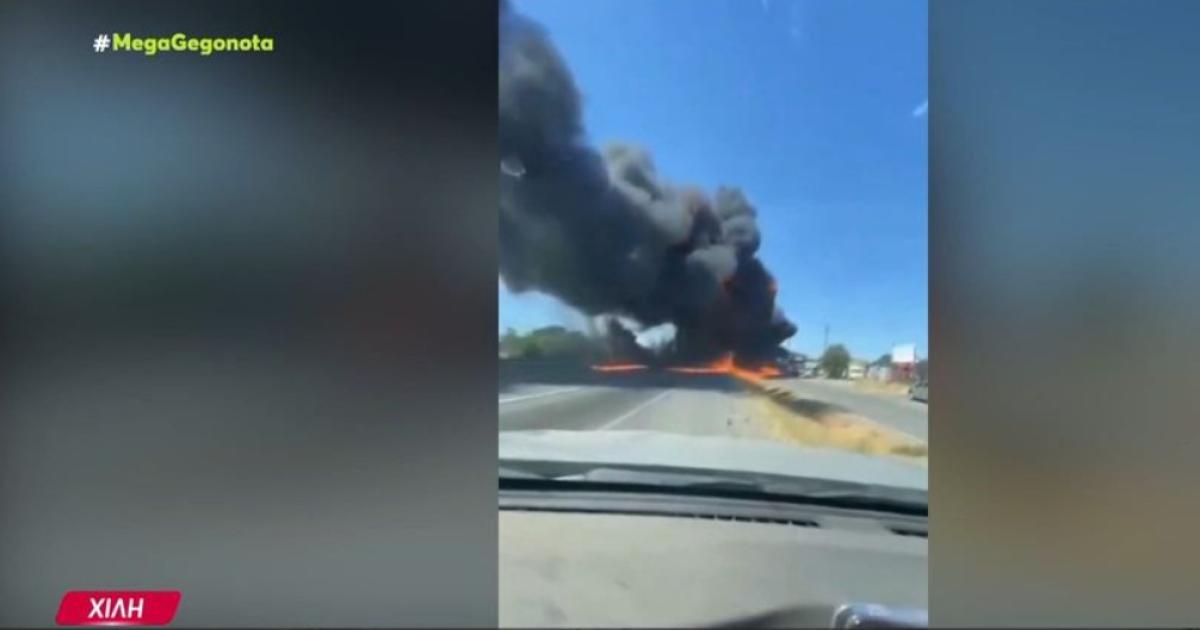 Όπως φαίνεται στο βίντεο που παρουσιάζει το MEGA, το αεροπλάνο πετά χαμηλά και χτυπά στα ηλεκτροφόρα καλώδια την ώρα που συμμετείχε σε κατάσβεση πυρκαγιάς κοντά σε αεροδρόμιο στην κεντρική Χιλή.
