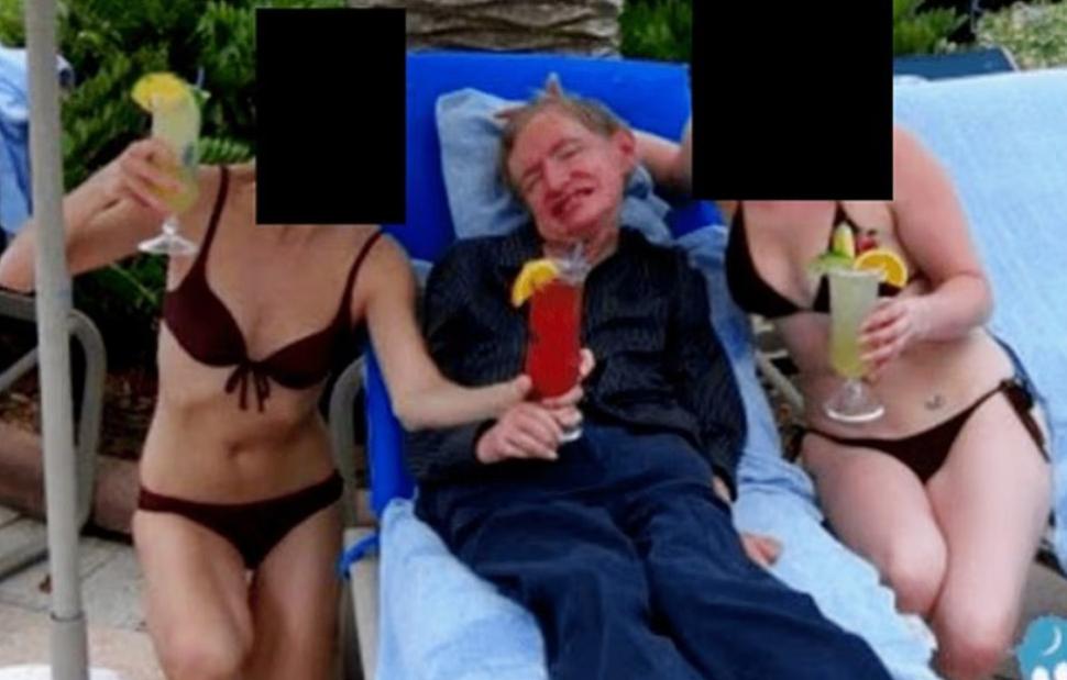 Μια φωτογραφία από τη νέα παρτίδα εγγράφων της υπόθεσης Έπσταϊν δείχνει τον εκλιπόντα Βρετανό θεωρητικό φυσικό Στίβεν Χόκινγκ να χαμογελά καθισμένος σε ξαπλώστρα και πλαισιωμένος από δύο γυναίκες με μαγιό που κρατούν κοκτέιλ.