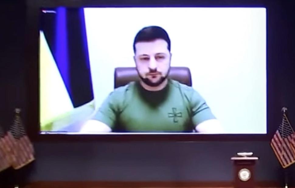 Στο Κογκρέσο των ΗΠΑ μίλησε ο Πρόεδρος της Ουκρανίας, Βολοντίμιρ Ζελένσκι, μέσω βιντεοσύνδεσης. Η πρόεδρος της αμερικανικής Βουλής, Νάνσι Πελόζι, παρουσίασε τον Ουκρανό Πρόεδρο λέγοντας ότι οι συνάδελφοί της στο Κογκρέσο τρέφουν «μεγάλο σεβασμό και θαυμασμό και εκτίμηση για τη θαρραλέα ηγεσία σας».
