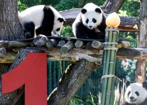 Τα πρώτα τους γενέθλια γιόρτασαν σήμερα τα δίδυμα πάντα του ζωολογικού κήπου του Βερολίνου, η Λένι και η Λότι. Το δώρο για αυτή την ξεχωριστή ημέρα...