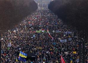 Ένα τεράστιο πλήθος έχει συγκεντρωθεί στη γερμανική πρωτεύουσα για να διαμαρτυρηθεί για την εισβολή της Ρωσίας στην Ουκρανία. Τουλάχιστον 100.000 ά...