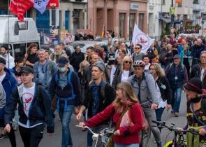 Αστυνομικοί συγκρούστηκαν με διαδηλωτές σήμερα στο Βερολίνο, όπου χιλιάδες άνθρωποι πραγματοποίησαν πορεία, φωνάζοντας συνθήματα και κρατώντας πανό κα...