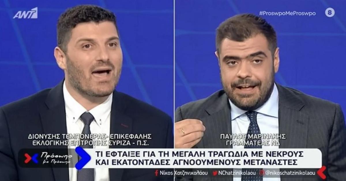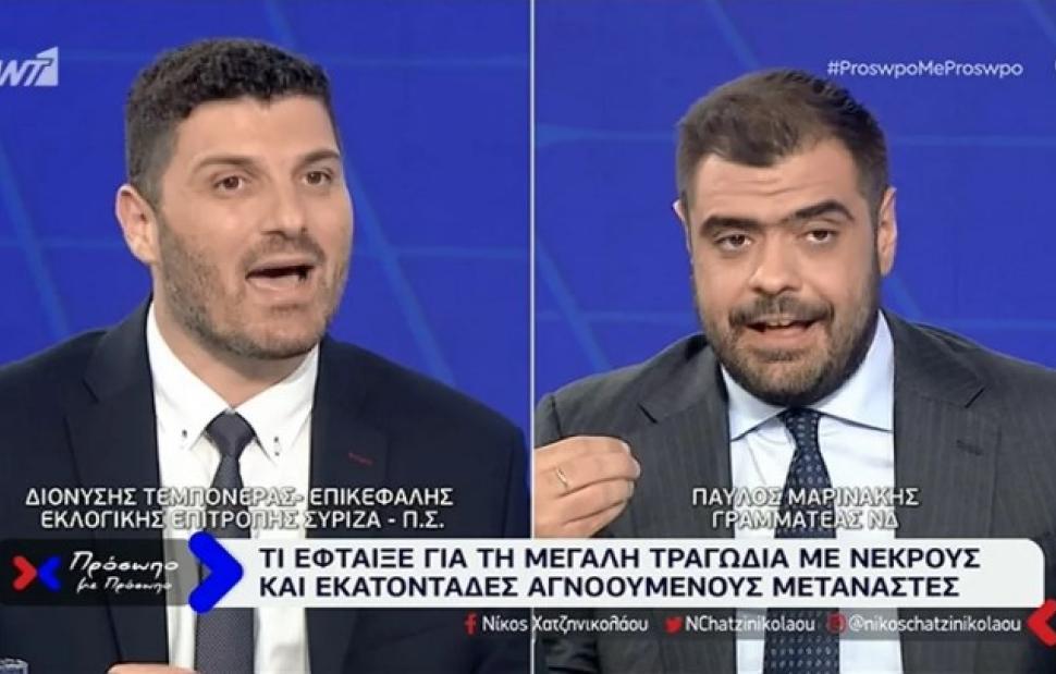 Σκληρή κόντρα είχαν ο Παύλος Μαρινάκης και ο Διονύσης Τεμπονέρας στον αέρα της εκπομπής «Πρόσωπο με πρόσωπο» στον ΑΝΤ1.
