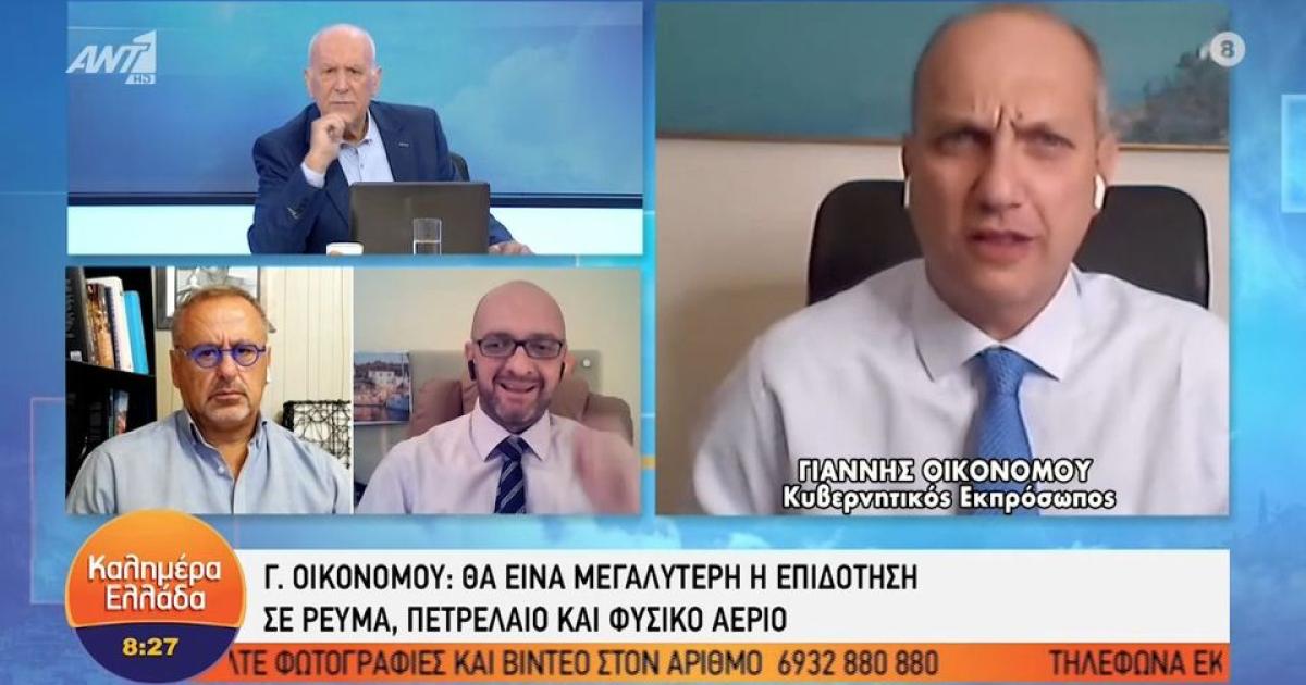 Όσον αφορά στο πολιτικό ζήτημα που προέκυψε με τη διαγραφή του Κωνσταντίνου Μπογδάνου από την Κοινοβουλευτική Ομάδα της Νέας Δημοκρατίας, ο Γιάννης Οικονόμου είπε ότι ο βουλευτής είχε προειδοποιηθεί πριν από περίπου τρεις εβδομάδες, δημόσια από τον ίδιο, να μην επαναλάβει συμπεριφορές που δεν σχετίζονται με τις αξίες της παράταξης. Ακόμα, πρόσθεσε πως η αντίδραση της κυβέρνησης και του Νίκου Δένδια ήταν αυτή που έπρεπε. Επίσης, ο Γιάννης Οικονόμου είπε ότι η Κυβέρνηση μας δικαιώνεται από την προτίμηση των πολιτών στις δημοσκοπήσεις. Τέλος και μεταξύ άλλων, κληθείς να επιβεβαιώσει τα σενάρια για αύξηση της επιδότησης για την ηλεκτρική ενέργεια, είπε ότι οι ανατιμήσεις είναι ένα παγκόσμιο φαινόμενο και η Κυβέρνηση θα κάνει ότι είναι απαραίτητο για να μην μείνει κανένας αβοήθητος.