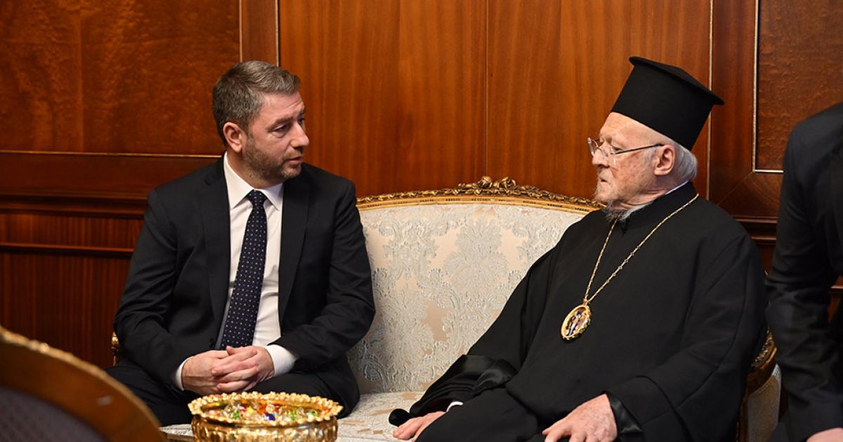 Συνάντηση με τον Οικουμενικό Πατριάρχη κ.κ. Βαρθολομαίο είχε το απόγευμα της Δευτέρας ο Πρόεδρος του ΠΑΣΟΚ-Κινήματος Αλλαγής, Νίκος Ανδρουλάκης.
