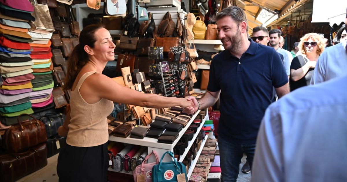 O πρόεδρος του ΠΑΣΟΚ-ΚΙΝΑΛ και στελέχη του κινήματος συνομίλησαν με πολίτες και εμπόρους και έγιναν αποδέκτες της αγωνίας τους για το αυξημένο κόστος ζωής.