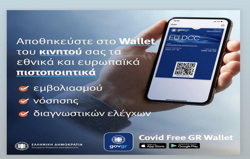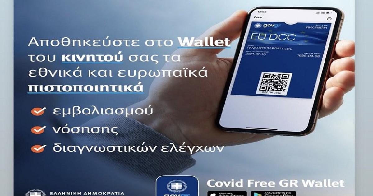 Με αυτή την εφαρμογή οι πολίτες έχουν τη δυνατότητα να αποθηκεύουν τα πιστοποιητικά και τις βεβαιώσεις κορωνοϊού (εμβολιασμού, νόσησης ή διαγνωστικού ελέγχου) σε εφαρμογή wallet του κινητού ή του tablet τους έχουν πλέον οι πολίτες μέσω του Covid Free Gr Wallet.