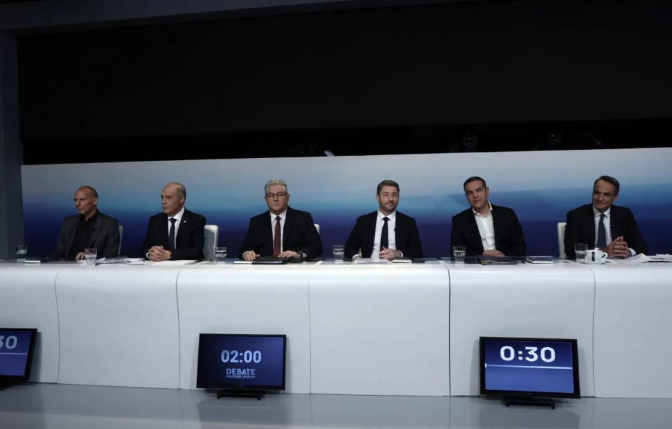Εντός του αυστηρού πλαισίου που είχε ορίσει η διακομματική επιτροπή, οι έξι πολιτικοί αρχηγοί ανέπτυξαν τις θέσεις τους στις έξι θεματικές ενότητες του χθεσινού debate στην ΕΡΤ, ενώπιον των έξι δημοσιογράφων και του τηλεοπτικού κοινού.