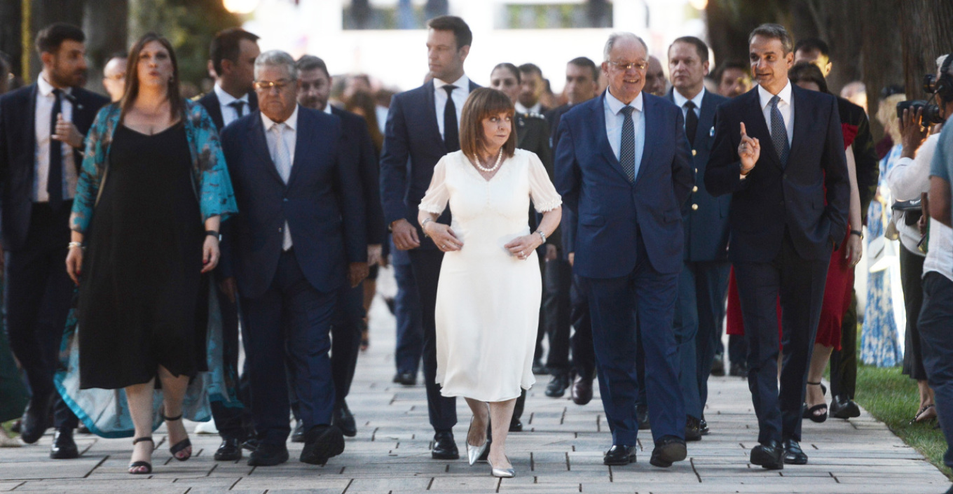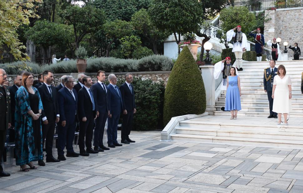 Η συμπλήρωση 50 ετών από την αποκατάσταση της Δημοκρατίας στη χώρα μας εορτάζεται απόψε με την καθιερωμένη δεξίωση στο Προεδρικό Μέγαρο. Το «παρών» δίνουν ο Πρωθυπουργός, πολιτικοί αρχηγοί, υπουργοί, βουλευτές ενώ η Πρόεδρος της Δημοκρατίας Κατερίνα Σακελλαροπούλου, έχει καλέσει δημάρχους ακριτικών και μαρτυρικών περιοχών, εκπροσώπους της Κοινωνίας των Πολιτών, διακεκριμένους αθλητές και αρχηγούς ομάδων που κατέκτησαν ευρωπαϊκά τρόπαια, πλημμυροπαθείς από τη Θεσσαλία, ανθρώπους από τον χώρο των γραμμάτων και των τεχνών, Έλληνες που έχουν διακριθεί στο εξωτερικό για την επιστημονική τους έρευνα, αλλά και απλούς πολίτες που διακρίθηκαν για την προσφορά τους προς τον συνάνθρωπο.