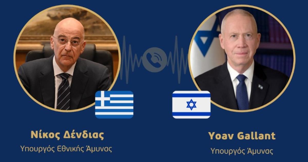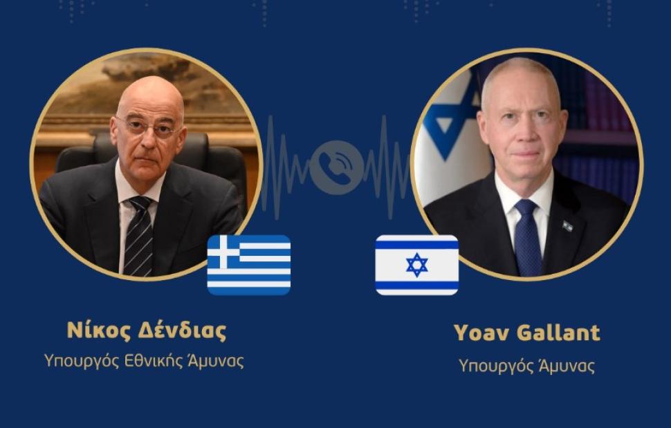 Τηλεφωνική επικοινωνία με τον υπουργό Άμυνας του Ισραήλ, Γιοάβ Γκαλάντ, είχε σήμερα ο υπουργός Εθνικής Άμυνας Νίκος Δένδιας.