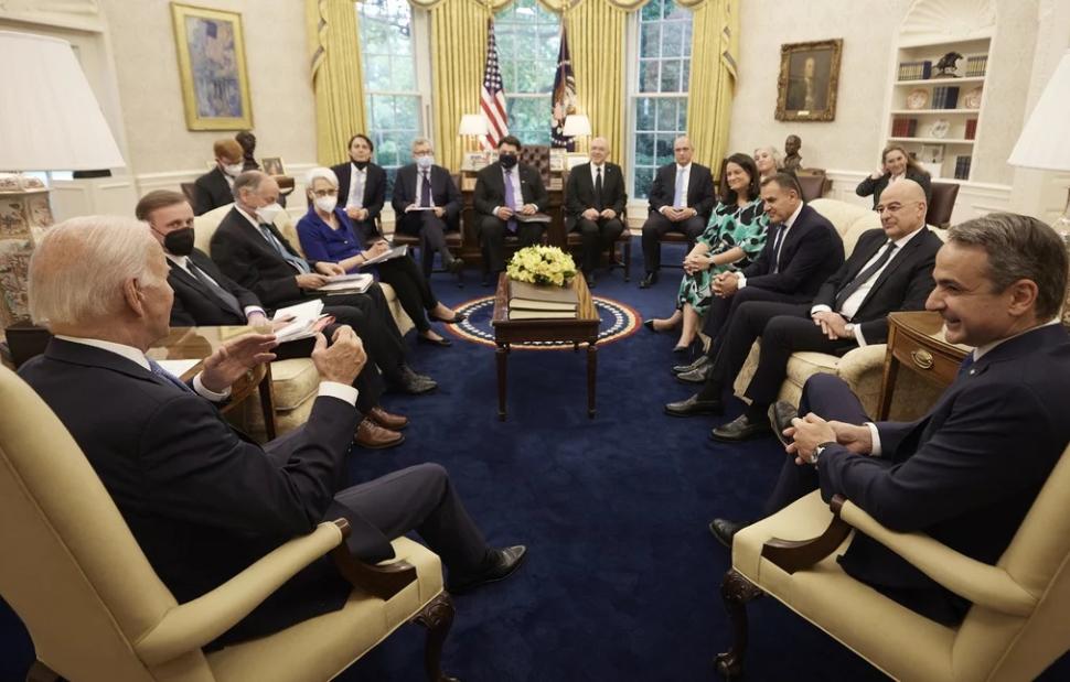 Κληθείς να απαντήσει αν η θερμή υποδοχή στον πρωθυπουργό στις ΗΠΑ, οι θερμές αντιδράσεις και τα θετικά σχόλια για την ομιλία του στο Κογκρέσο, θα έχουν κάποιο πρακτικό αντίκρισμα στα ελληνικά συμφέροντα, ο Νίκος Δένδιας παρατήρησε ότι θερμότητα αυτής της επίσκεψης είναι πρωτοφανής. «Το γεγονός ότι δόθηκε στον πρωθυπουργό, η πρώτη ευκαιρία σε Έλληνα πρωθυπουργό, να απευθυνθεί στα δύο σώματα, ο τρόπος που απευθύνθηκε στον Κυρ. Μητσοτάκη ο Πρόεδρος Μπάιντεν, τα λόγια της Πρώτης Κυρίας στη δεξίωση στον Λευκό Οίκο, ήταν πρωτόγνωρα για την Ελλάδα» ανέφερε και τόνισε πως αυτά είναι τα σημεία μιας σχέσης που έχει χτιστεί βήμα βήμα όλα τα προηγούμενα χρόνια. Από εκεί και πέρα, επισήμανε ότι αυτά μόνα τους σηματοδοτούν μια ατμόσφαιρα που υποδηλώνει την αμερικανική θέση απέναντι στα ευρύτερα προβλήματα της περιοχής. «Εμείς δεν περιμένουμε από τις ΗΠΑ ούτε να μετατραπούν σε εχθρό της Τουρκίας ούτε να διώξουν την Τουρκία από το ΝΑΤΟ. Εμείς περιμένουμε από τις ΗΠΑ μια σαφή τοποθέτηση στα θέματα του Διεθνούς Δικαίου και του Δικαίου της Θάλασσας και τη δυνατότητα που έχουν όχι να παρέμβουν σε περίπτωση επεισοδίου, αλλά να προλάβουν το επεισόδιο» ξεκαθάρισε.