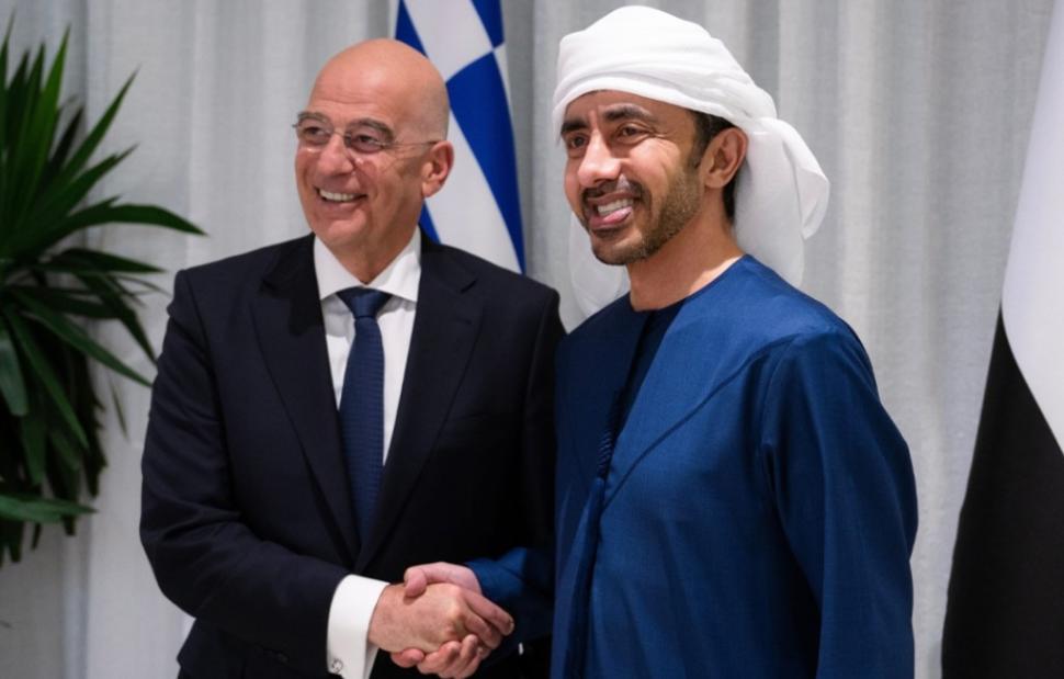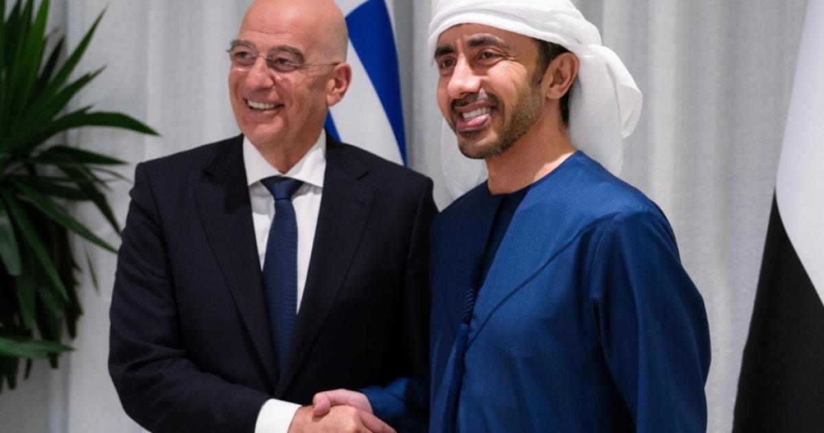 Ο Νίκος Δένδιας συναντήθηκε στο Άμπου Ντάμπι με τον αναπληρωτή πρωθυπουργό και υπουργό Εξωτερικών των Ηνωμένων Αραβικών Εμιράτων, σεΐχη Αμπνουλάχ μπιν Ζαγέντ Αλ Νάχιαν, στον οποίο επανέλαβε την αμέριστη συμπαράσταση της Ελλάδας.