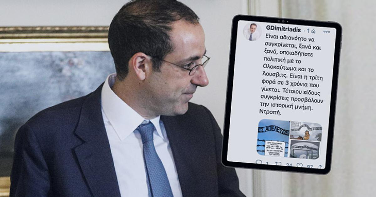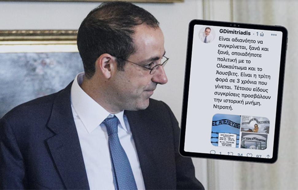 «Είναι αδιανόητο να συγκρίνεται, ξανά και ξανά, οποιαδήποτε πολιτική με το Ολοκαύτωμα και το Άουσβιτς. Είναι η τρίτη φορά σε 3 χρόνια που γίνεται. Τέτοιου είδους συγκρίσεις προσβάλουν την ιστορική μνήμη. Ντροπή.», έγραψε στο twitter ο Γρηγόρης Δημητριάδης.