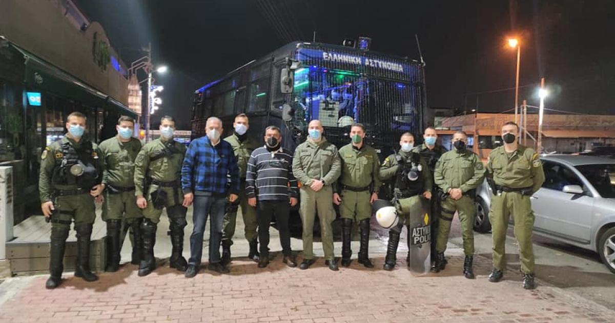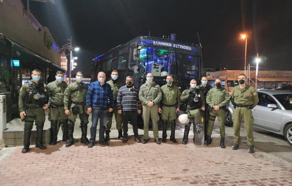«Με τους άνδρες της 514 διμοιρίας της ΥΑΤ στα Άνω Λιόσια. Τους ευχαρίστησα για τον επαγγελματισμό τους στις αποστολές που αναλαμβάνουν, ανταλλάξαμε ευχές για τη νέα χρονιά και συζητήσαμε τα θέματα που τους απασχολούν».