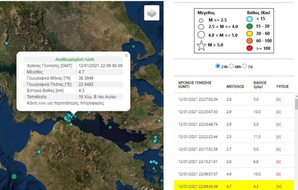 Ο πρώτος σεισμός ήταν μεγέθους 4,7 βαθμών της κλίμακας Ρίχτερ, στις 9 λεπτά μετά τα μεσάνυχτα και ελάχιστα δευτερόλεπτα αργότερα σημειώθηκε ο δεύτερος, μεγέθους 4,9 βαθμών της κλίμακας Ρίχτερ, με ελαφρώς μετατοπισμένο επίκεντρο.