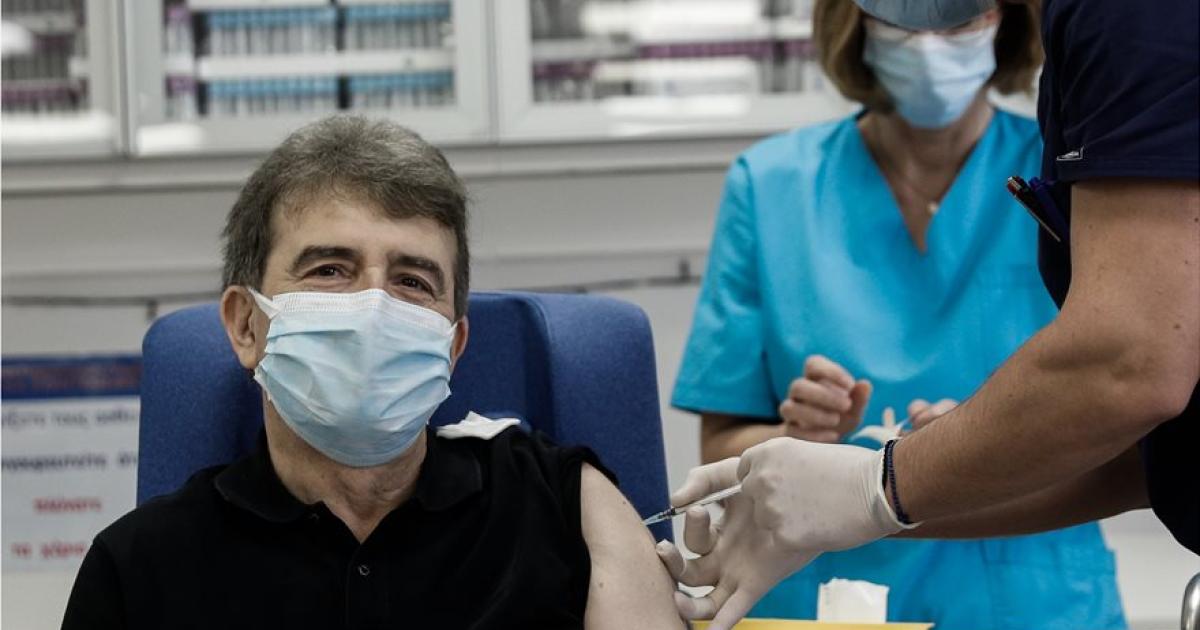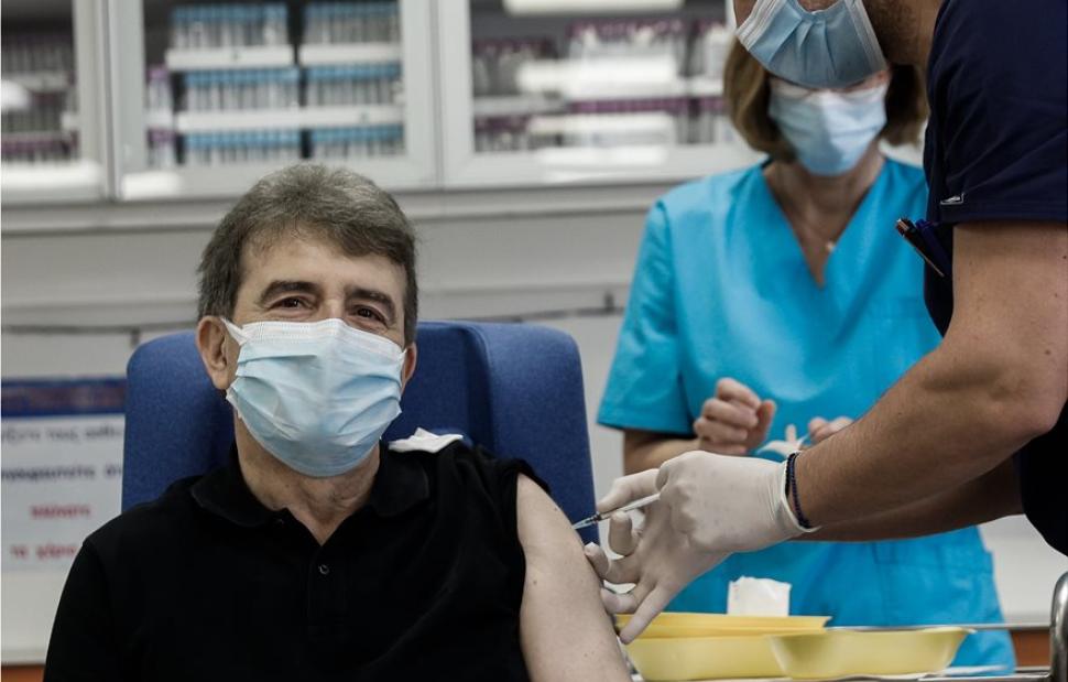 Ο υπουργός αφού θερμομετρήθηκε πέρασε στην αίθουσα οπού πραγματοποιούνται οι εμβολιασμοί και έκανε το εμβόλιο κατά της νόσου covid-19.
