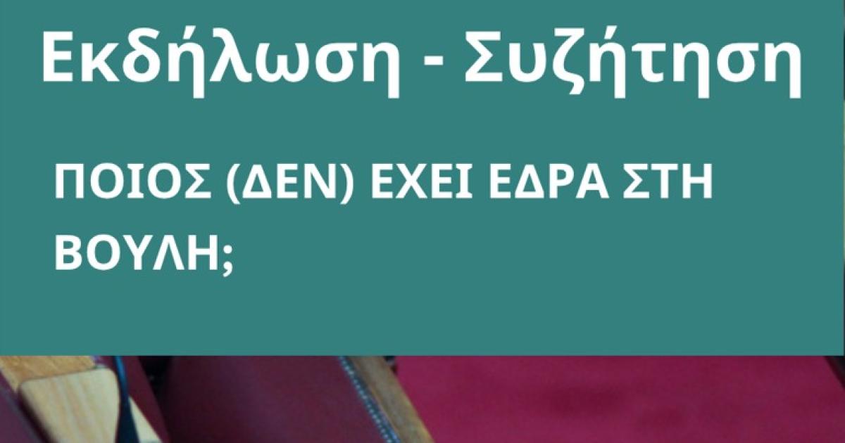 11:30 | Παρουσίαση της μελέτης: «Ελλάδα: Ποιος (δεν) έχει έδρα στη Βουλή;»