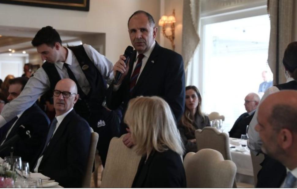Κατά την πρόποση στην έναρξη του γεύματος, ο Γιώργος Γεραπετρίτης αναφέρθηκε με ιδιαίτερα θερμά λόγια στην ελληνογαλλική φιλία, σημειώνοντας ότι πρόκειται για μια «σημαντική ημέρα για τις σχέσεις των δύο χωρών», υπογραμμίζοντας το βάθος και τη διαχρονικότητα της διμερούς συνεργασίας.