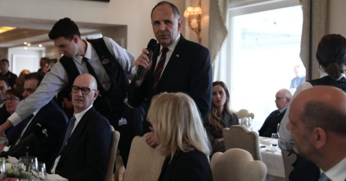 Από ελληνικής πλευράς παρίστανται ο υπουργός Εξωτερικών Γιώργος Γεραπετρίτης, ο Νίκος Δένδιας, ο Κυριάκος Πιερρακάκης, ο Τάκης Θεοδωρικάκος, η Ντόρα Μπακογιάννη, ο Γιώργος Φωτήλας, καθώς και η κα Παπαδοπούλου.