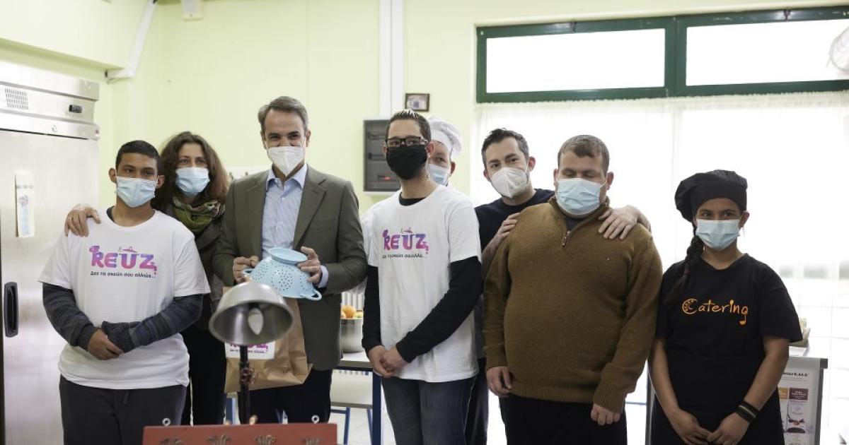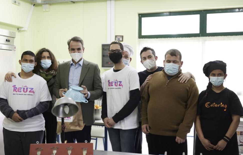 Ο Κυριάκος Μητσοτάκης ξεναγήθηκε από τους εκπαιδευτικούς και συνομίλησε με τους μαθητές και τους αποφοίτους στο εργαστήριο ζαχαροπλαστικής και μαγειρικής, όπου τα παιδιά παρασκευάζουν μεταξύ άλλων γλυκό κουταλιού και μπάρες δημητριακών.