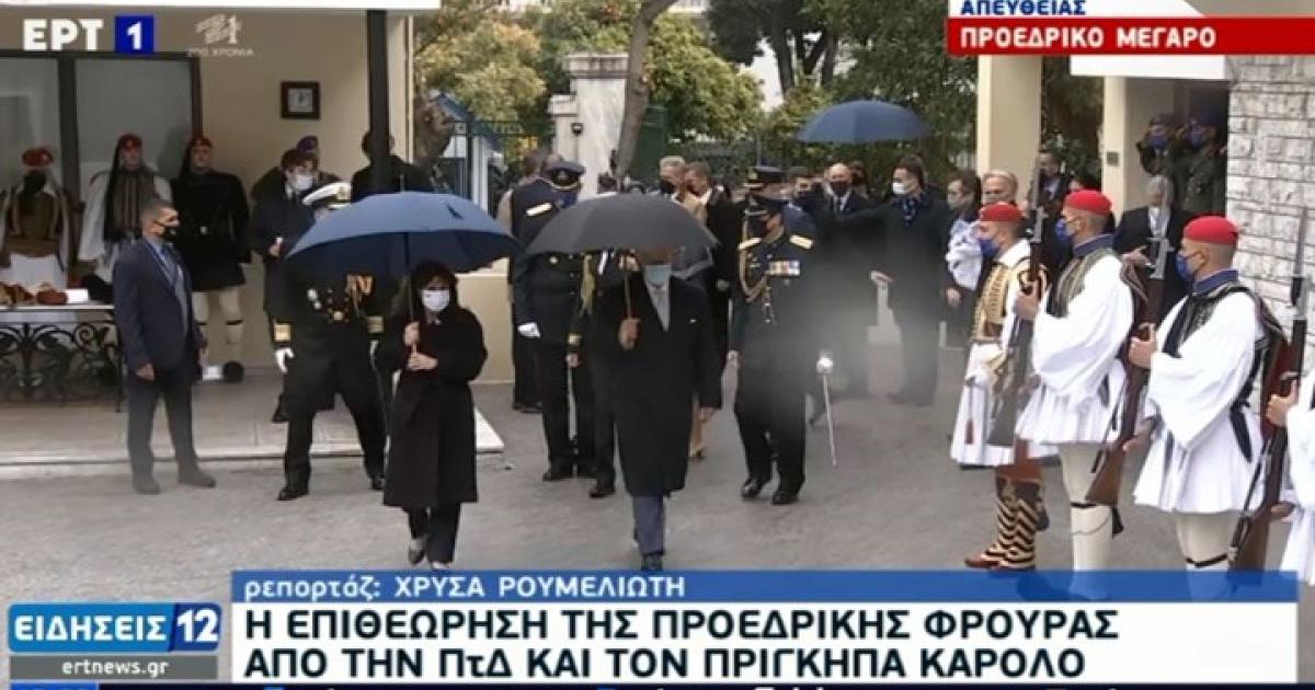 Η επιθεώρηση της Προεδρικής Φρουράς έγινε μετά την κατ' ιδίαν συνάντηση που είχαν στο Προεδρικό Μέγαρο.