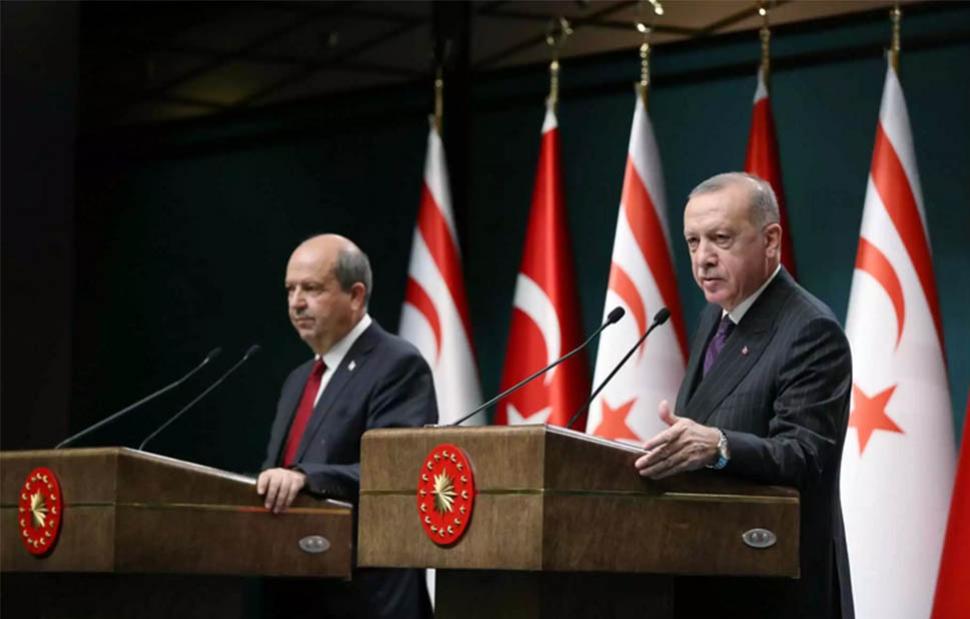 Σε κοινές δηλώσεις που έκανε με τον πρόεδρο του ψευδοκράτους, Ερσίν Τατάρ, ο Ερντογάν τόνισε για τις σχέσεις με την Ελλάδα ότι “δεν υπάρχει άλλη διέξοδος, από την ειρήνη στις θάλασσες μας. Αν δεν θέλουν ειρήνη, θα εφαρμόσουμε διαφορετικές πολιτικές. Δεν θέλουμε εμπόδια στο δρόμο μας. Ας δώσει το Αιγαίο σε όλο τον κόσμο το μήνυμα της παγκόσμιας θάλασσας”.