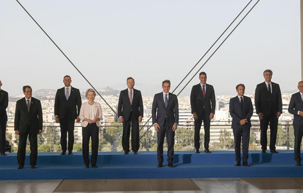 «Οι Χώρες του Νότου της ΕΕ Γαλλία, Ελλάδα, Ισπανία Ιταλία, Κροατία, Κύπρος, Μάλτα, Πορτογαλία και Σλοβενία, που συνήλθαν την 17η Σεπτεμβρίου 2021 στην Αθήνα, σε επίπεδο Αρχηγών Κρατών και Κυβερνήσεων, με τη συμμετοχή της Προέδρου της Ευρωπαϊκής Επιτροπής, υπογραμμίζουν την κοινή και ισχυρή πεποίθησή τους πως η επείγουσα και φιλόδοξη παγκόσμια δράση – σε εθνικό, περιφερειακό και τοπικό επίπεδα, και με τη συμμετοχή όλων των ενδιαφερομένων μερών, ιδίως της κοινωνίας των πολιτών και του ιδιωτικού τομέα – είναι πλέον, περισσότερο από ποτέ, αναγκαία για την αντιμετώπιση της κλιμακούμενης κλιματικής και περιβαλλοντικής κρίσης και για τη δημιουργία ενός ασφαλούς ευημερούντος, δίκαιου και βιώσιμου μέλλοντος για τις κοινωνίες μας κατά τον 21ο αιώνα, επί τη βάσει των προτύπων κυκλικής οικονομίας.