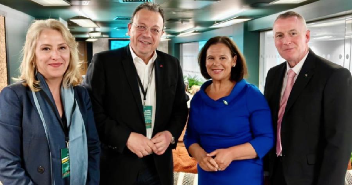 «Ευχαριστούμε για τη φιλοξενία και ευχόμαστε κάθε επιτυχία στο Συνέδριο του Σιν Φέιν σε όλα τα επίπεδα και τους στόχους που θέτει στις πολιτικές κοινωνικής δικαιοσύνης και στα θέματα της δημοκρατικής επανένωσης της Ιρλανδίας.