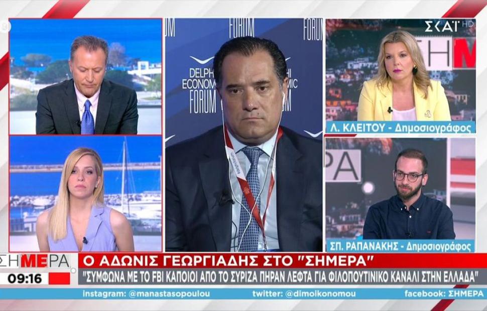 «Επειδή σήμερα έχουμε το πολύ μείζον γεγονός της συλλήψεως στις ΗΠΑ και των διώξεων για το κανάλι που φτιάχτηκε επί ΣΥΡΙΖΑ στην Ελλάδα με μαύρα ρωσικά λεφτά για τη ρωσική προπαγάνδα και με τον κ. Βαξεβάνη διευθυντή, κι επειδή για αυτό δεν έχουμε ακούσει ούτε κιχ από τον ΣΥΡΙΖΑ, εδώ τι μαθαίνουμε για το FBI; Όταν είχαμε τη Novartis μας λέγανε "λέει ψέματα το FBI"; Το FBI τώρα λέει ότι κάποιοι από τον ΣΥΡΙΖΑ πήραν μαύρα λεφτά κι έκαναν κανάλι φιλοπουτινικό στην Ελλάδα και τώρα έχουν γίνει και συλλήψεις. Και διευθυντής ήταν το alter ego του Πολάκη και του Τσίπρα, ο Βαξεβάνης. Δε δικαιούται ο κάθε Έλληνας να πιστεύει ότι όλοι αυτοί ωρύονται για το Αζόφ έχουν πάρει και λίγο πουτινικό μαύρο χρήμα;», πρόσθεσε ο Άδωνις Γεωργιάδης.