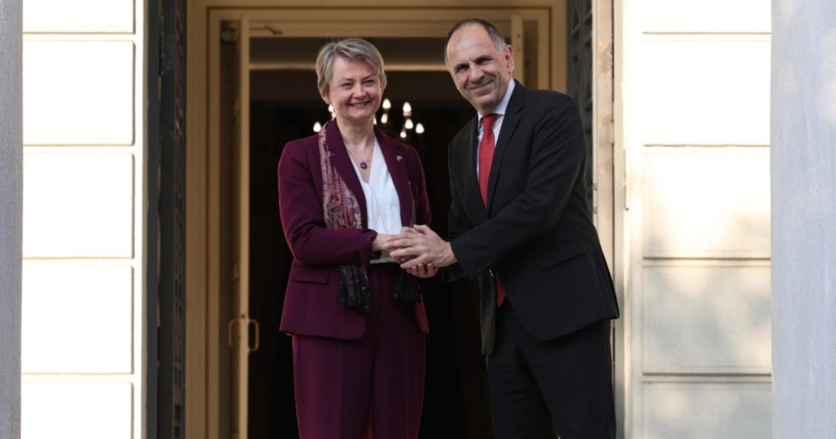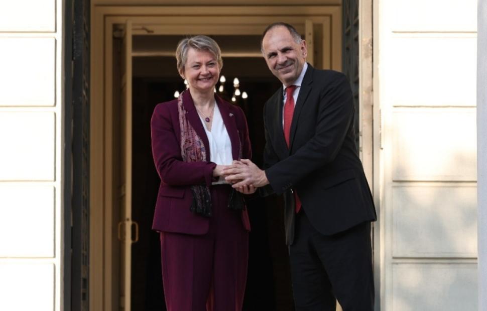 Mε την υπουργό Εξωτερικών της Βρετανίας, Ιβέτ Κούπερ, συναντήθηκε το απόγευμα ο υπουργός Εξωτερικών, Γιώργος Γεραπετρίτης. Τα δυο κύρια ζητήματα που έθιξε ο Γιώργος Γεραπετρίτης είναι το θέμα της ενίσχυσης του οπλοστασίου χωρών που απειλούν συμμάχους στο ΝΑΤΟ, καθώς και η επανένωση των Γλυπτών του Παρθενώνα.