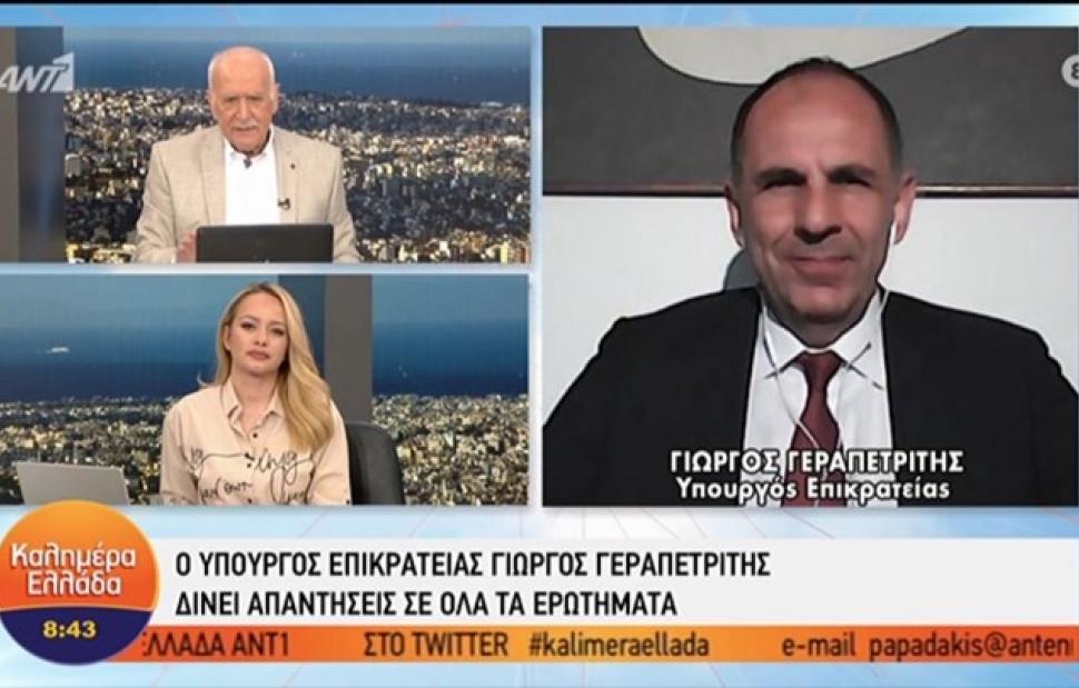 «Αυτή τη στιγμή η κατάσταση πηγαίνει καλά αλλά δεν πρέπει να εφησυχάζουμε. Για ένα διάστημα ακόμη πρέπει να είμαστε προσεκτικοί και να τηρούμε τα μέτρα», τόνισε ο υπουργός Επικρατείας, Γιώργος Γεραπετρίτης.
