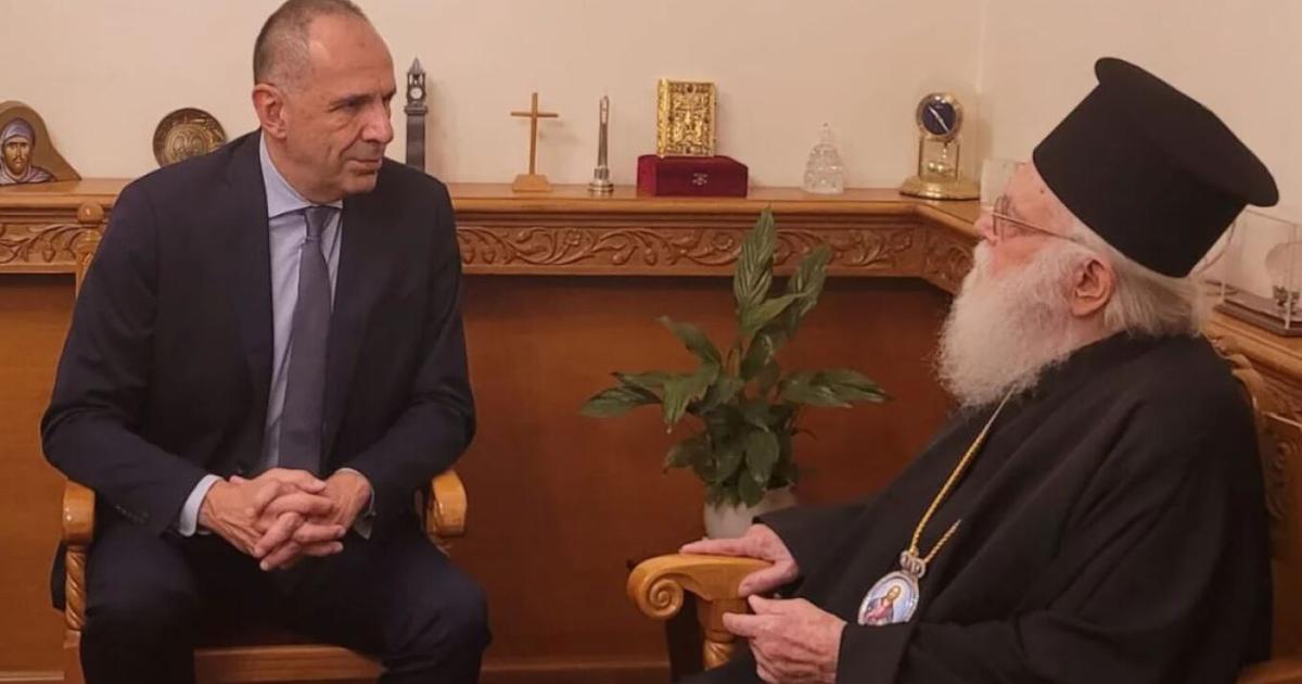 Κατά την άφιξή του στην Αλβανία, ο Γιώργος Γεραπετρίτης συναντήθηκε με τον Αρχιεπίσκοπο Τιράνων, Δυρραχίου και πάσης Αλβανίας, Αναστάσιο.