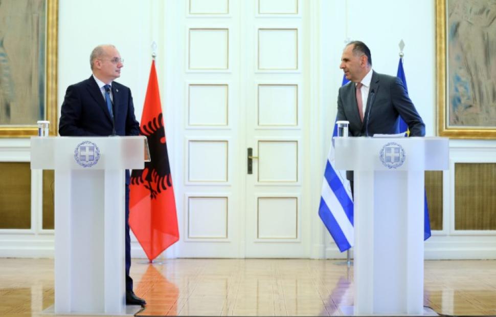«Θα ήθελα να αναφερθώ στον οφειλόμενο απόλυτο σεβασμό, στην προστασία και κατοχύρωση των δικαιωμάτων της γηγενούς ελληνικής εθνικής μειονότητας που αποτελεί για εμάς μείζονα προτεραιότητα. Η ελληνική εθνική μειονότητα είναι ένας από τους πιο ισχυρούς κρίκους στη σχέση μεταξύ των δύο χωρών μας», είπε ο Γιώργος Γεραπετρίτης.