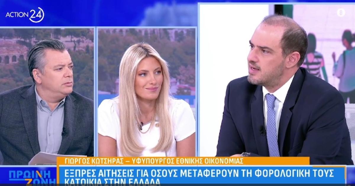 Στα θετικά μέτρα που θα εφαρμοστούν το προσεχές διάστημα για την ενίσχυση του εισοδήματος των πολιτών και τον επαναπατρισμό Ελλήνων από το εξωτερικό επικεντρώθηκε ο Υφυπουργός Εθνικής Οικονομίας και Οικονομικών, μιλώντας σήμερα Δευτέρα 6 Οκτωβρίου στην εκπομπή «Πρωινή Ζώνη» του τηλεοπτικού σταθμού «Action 24» και στους δημοσιογράφους Νίκο Υποφάντη και Αλεξάνδρα Καϋμένου.