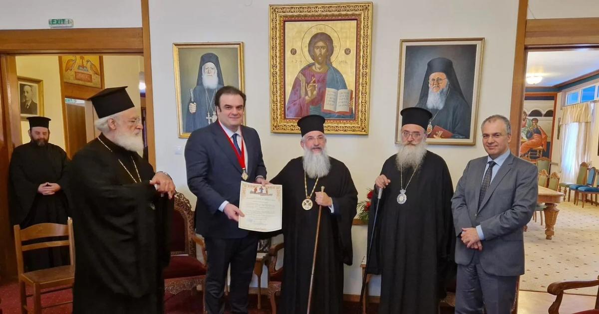 Τον Σταυρό των Αποστόλων Παύλου και Τίτου, ανώτατη διάκριση της Εκκλησίας της Κρήτης, απένειμε στον Κυριάκο Πιερρακάκη ο Αρχιεπίσκοπος Κρήτης Ευγένιος, κατά τη διάρκεια επίσκεψης του υπουργού Οικονομικών στο νησί.