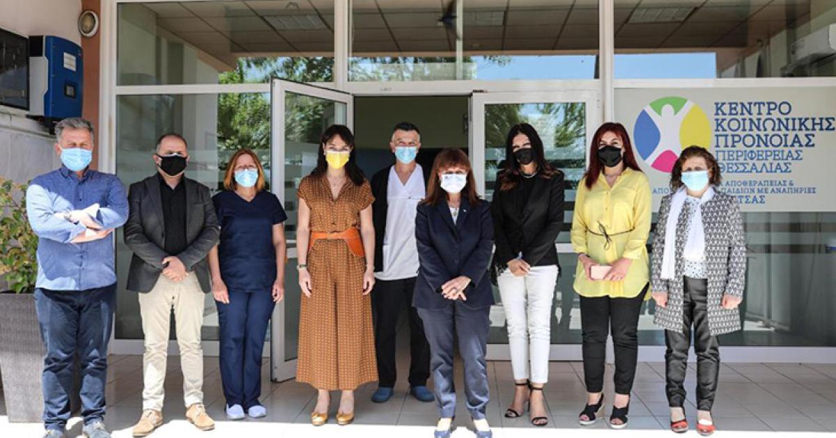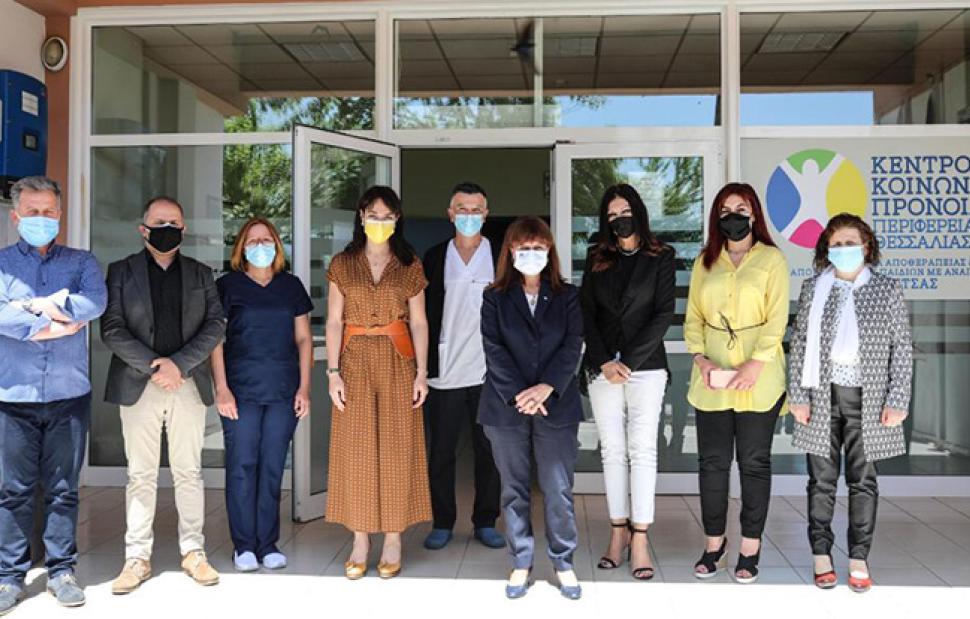 Η Πρόεδρος της Δημοκρατίας, Κατερίνα Σακελλαροπούλου, επισκέφτηκε σήμερα το Παράρτημα Αποθεραπείας και Αποκατάστασης παιδιών με αναπηρίες Καρδίτσας προκειμένου να συγχαρεί τη διοίκηση, αλλά και την υφυπουργό Εργασίας και Κοινωνικών Υποθέσεων, Δόμνα Μιχαηλίδου, για την αποτελεσματική θωράκιση και τον άμεσο εμβολιασμό των παιδιών κατά του κορωνοϊού.
