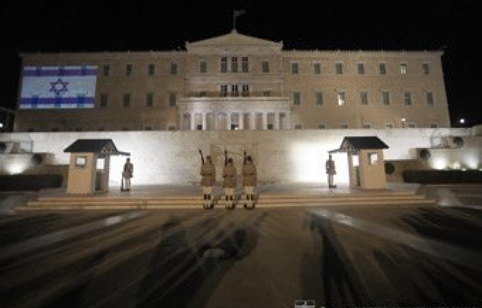Με τη σημαία του Κράτους του Ισραήλ φωταγωγείται απόψε το κτήριο της Βουλής των Ελλήνων, σε ένδειξη συμπαράστασης προς τον ισραηλινό λαό για τις απάνθρωπες τρομοκρατικές επιθέσεις που υπέστη από τη Χαμάς.