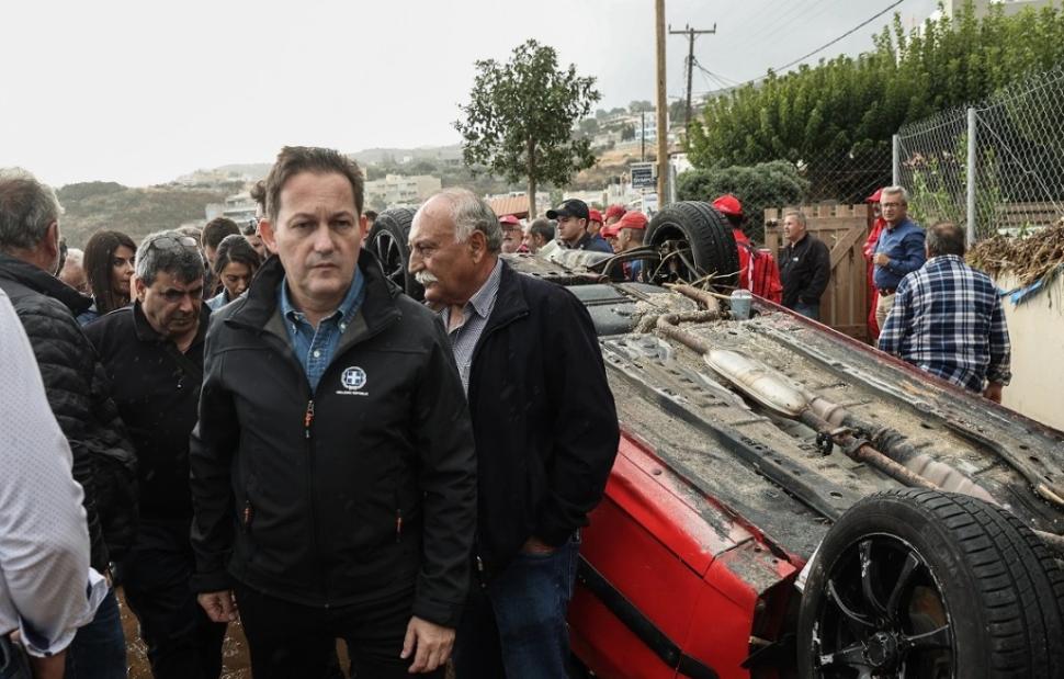 Στις πληγείσες περιοχές του Ηρακλείου Κρήτης βρίσκεται ήδη το κυβερνητικό κλιμάκιο υπό τον αναπληρωτή υπουργό Εσωτερικών Στέλιο Πέτσα και τον υφυπουργό παρά τω πρωθυπουργώ, αρμόδιο για την Κρατική Αρωγή και την Αποκατάσταση από Φυσικές Καταστροφές Χρήστο Τριαντόπουλο, με τη συμμετοχή του γενικού γραμματέα Πολιτικής Προστασίας, Βασίλη Παπαγεωργίου, της γενικής γραμματέως Αγροτικής Ανάπτυξης και Τροφίμων, Χριστιάνας Καλογήρου, του γενικού γραμματέα Χωρικού Σχεδιασμού και Αστικού Περιβάλλοντος, Ευθύμιου Μπακογιάννη, και της γενικής γραμματέως Υποδομών, Μαρίας - Έλλης Γεράρδη.