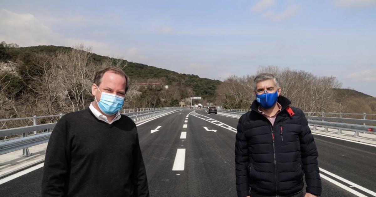 Μαζί με τον κ. Καραμανλή, στη γέφυρα βρέθηκαν ο γενικός γραμματέας Υποδομών, Γιώργος Καραγιάννης, ο περιφερειάρχης Θεσσαλίας, Κώστας Αγοραστός και ο γενικός εκτελεστικός διευθυντής της «Αυτοκινητόδρομος Αιγαίου ΑΕ», Δημήτριος Γκατσώνης.