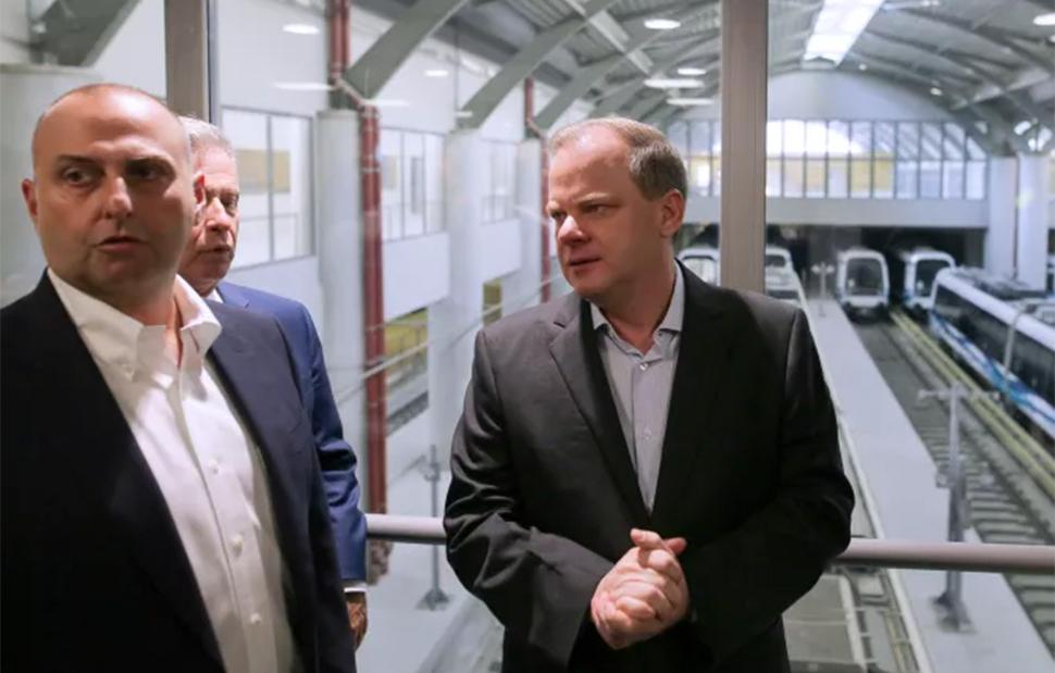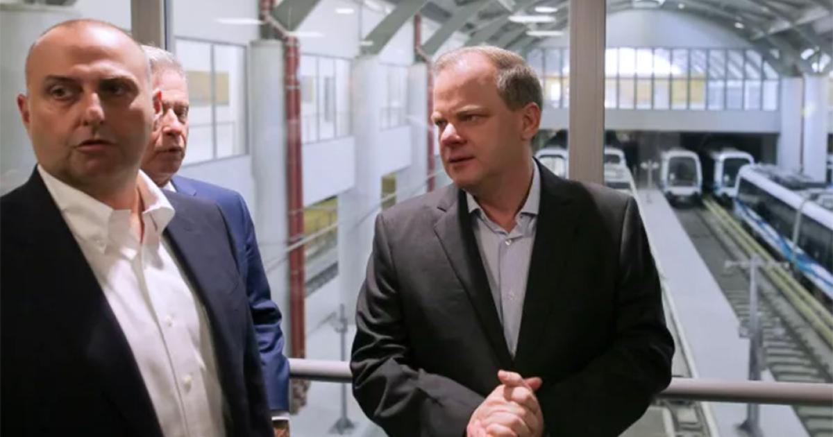 Ο υπουργός συνοδευόταν από τον υφυπουργό Υποδομών, Γιώργο Καραγιάννη, ενώ κατά την άφιξή του στο αμαξοστάσιο τον υποδέχτηκαν ο πρόεδρος της Αττικό Μετρό ΑΕ Νίκος Ταχιάος και ο διευθύνων σύμβουλος Νίκος Κουρέτας, ο γενικός διευθυντής για τον ανάδοχο Παναγιώτης Κορακίτης και ο πρόεδρος και διευθύνων σύμβουλος του Άκτωρα Χρήστος Παναγιωτόπουλος. Στην ξενάγηση συμμετείχαν και εκπρόσωποι του μέλους της κοινοπραξίας του αναδόχου Hitachi Ansaldo.