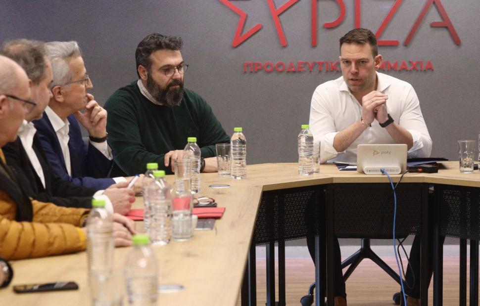 Στη συνάντηση συμμετέχουν εκ μέρους του ΣΥΡΙΖΑ, η γραμματέας της Κεντρικής Επιτροπής Ράνια Σβίγκου και ο αναπληρωτής γραμματέας, Γιώργος Βασιλειάδης, ο τομεάρχης Εργασίας του ΣΥΡΙΖΑ, Γιώργος Γαβρήλος, και η υπεύθυνη της Πολιτικής Γραμματείας για την Εργασία και τις Συνδικαλιστικές Οργανώσεις, Μαριλίζα Ξενογιαννακοπούλου.