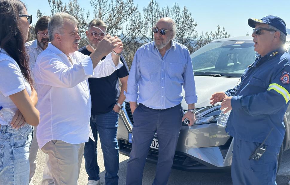 Ο βουλευτής Δωδεκανήσου υπεύθυνος του Κοινοβουλευτικού Τομέα Ανάπτυξης Γιώργος Νικητιάδης, η βουλευτής Λασιθίου και υπεύθυνη του Κοινοβουλευτικού Τομέα Τουρισμού Κατερίνα Σπυριδάκη και ο βουλευτής Αργολίδας και υπεύθυνος του Κοινοβουλευτικού Τομέα Κλιματικής Κρίσης και Πολιτικής Προστασίας Ανδρέας Πουλάς, ο υποψήφιος Περιφερειάρχης Νοτίου Αιγαίου που στηρίζεται από το ΠΑΣΟΚ Νικηφόρος Παπανικόλας και άλλα τοπικά στελέχη βρέθηκαν στις πυρόπληκτες περιοχές και ενημερώθηκαν για τις επιπτώσεις στο φυσικό περιβάλλον από τον καθηγητή Δυναμικής Τεκτονικής και Εφαρμοσμένης Γεωλογίας Ευθύμιο Λέκκα.