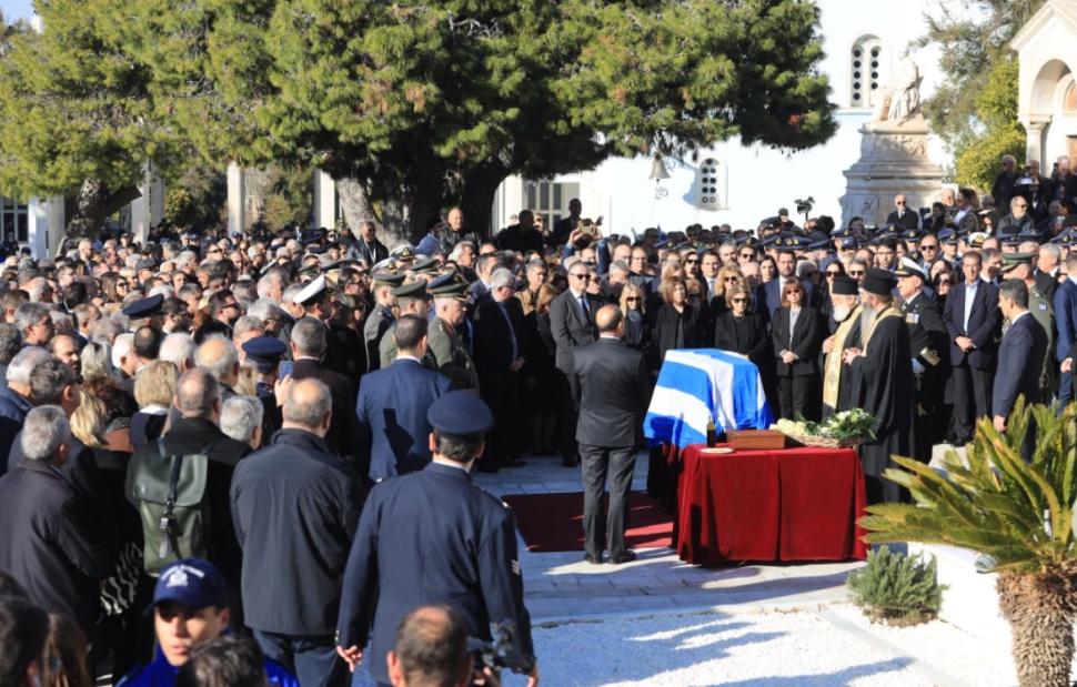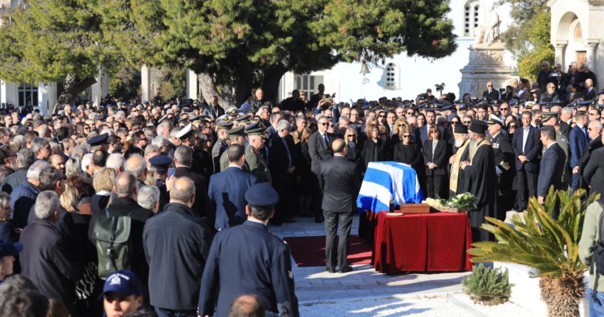 Δοτικός στη σύζυγό του και τις κόρες τους. Οι μαρτυρίες καταδεικνύουν πόσο θα λείψει αλλά το υπόδειγμά του θα παραμείνει ζωντανό σαν παρακαταθήκη», τόνισε στον επικήδειό της η Πρόεδρος της Δημοκρατίας Κατερίνα Σακελλαροπούλου.