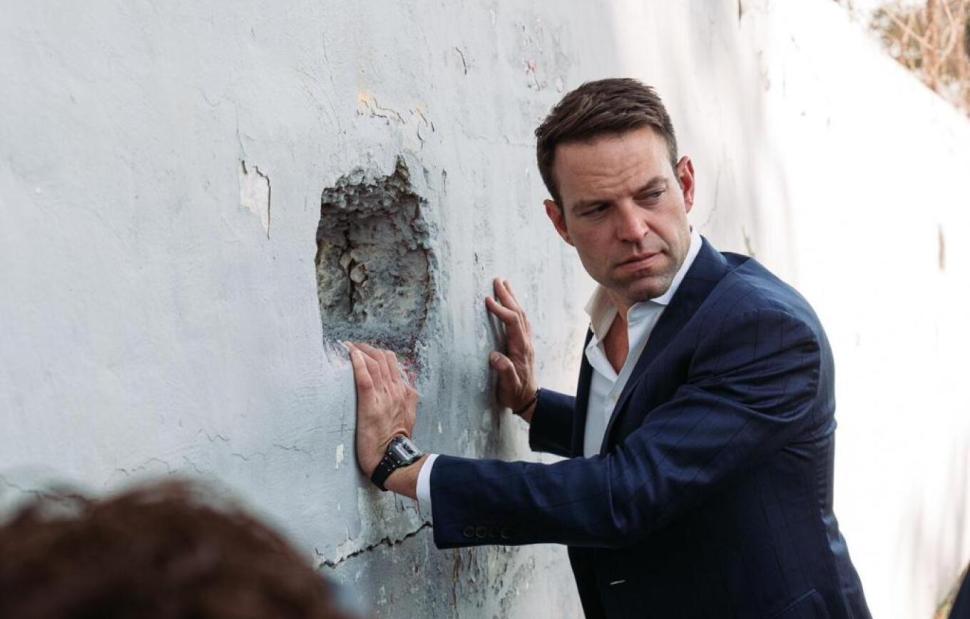 Στη σύντομη ξενάγησή του στην Νεκρή Ζώνη, ο Στέφανος Κασσελάκης παρατήρησε από μια σχισμή την απέναντι πλευρά, βλέποντας την κατεχόμενη Λευκωσία.