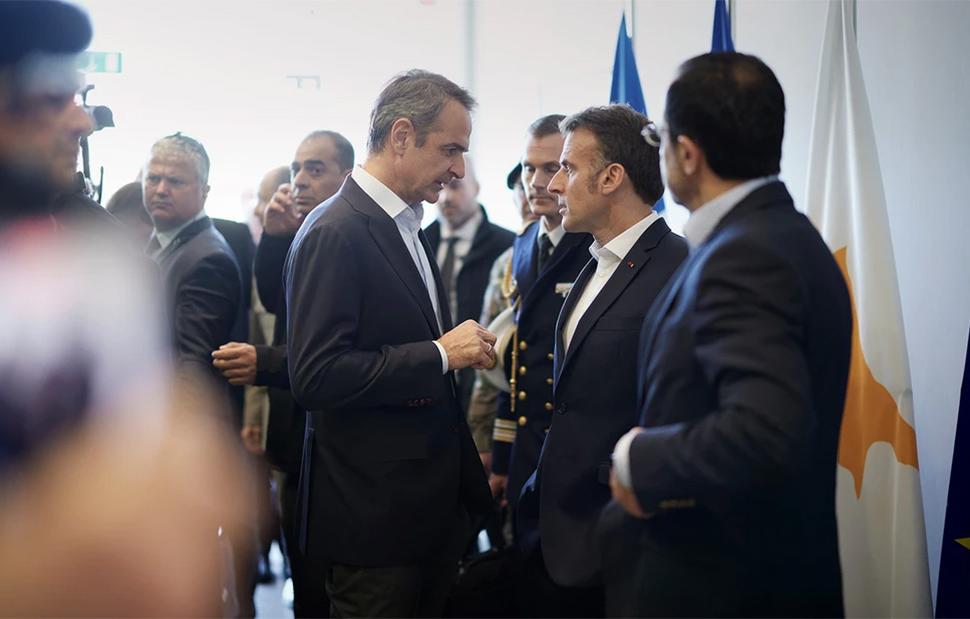 Οι πρόσφατες εξελίξεις στο Ιράν και γενικότερα στη Μέση Ανατολή βρέθηκαν στο επίκεντρο των συνομιλιών που πραγματοποίησαν ο Γάλλος πρόεδρος Εμανουέλ Μακρόν με τον Κυριάκο Μητσοτάκη και τον Νίκο Χριστοδουλίδη στη στρατιωτική βάση «Ανδρέας Παπανδρέου» στην Πάφο.